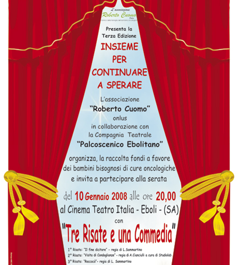 © 2017 Roberto Cuomo ONLUS | Via Mario Vignola, 12 - 84025 - Eboli (SA) | info@assrobertocuomo.it | P.IVA/CF  04251260651 | Iban: IT02T0306976204100000006536